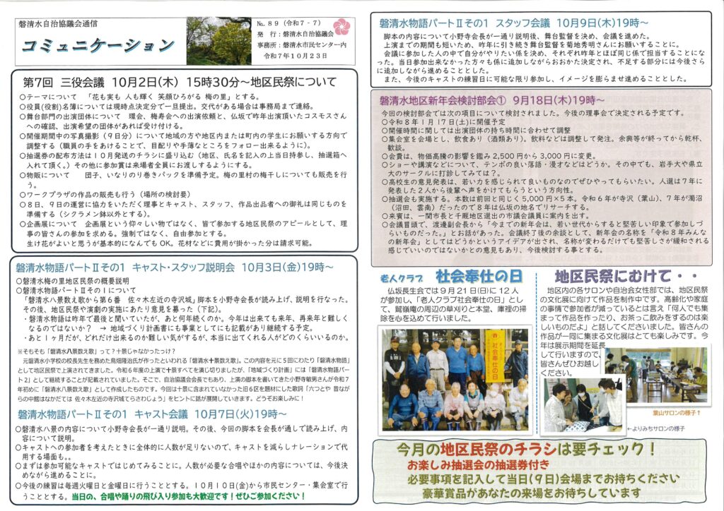 令和7年10月の磐清水自治協議会通信「コミュニケーション」と、