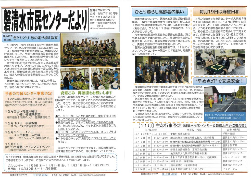 磐清水自治協議会通信、磐清水市民センター広報10月号 更新しました