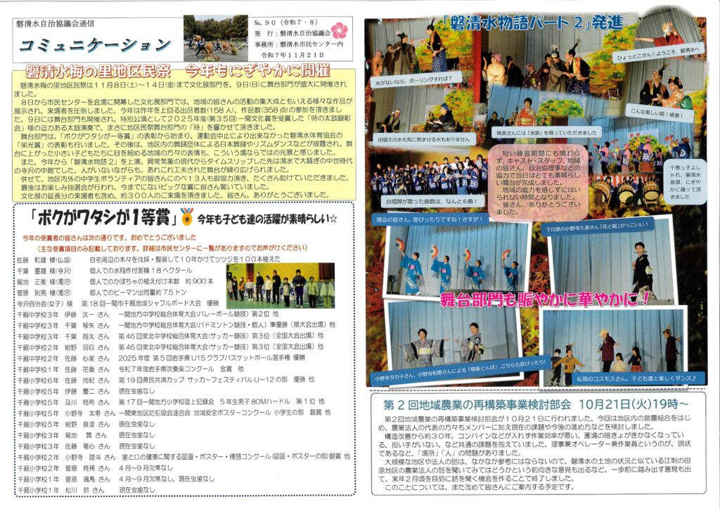 令和7年11月の磐清水自治協議会通信「コミュニケーション」と、