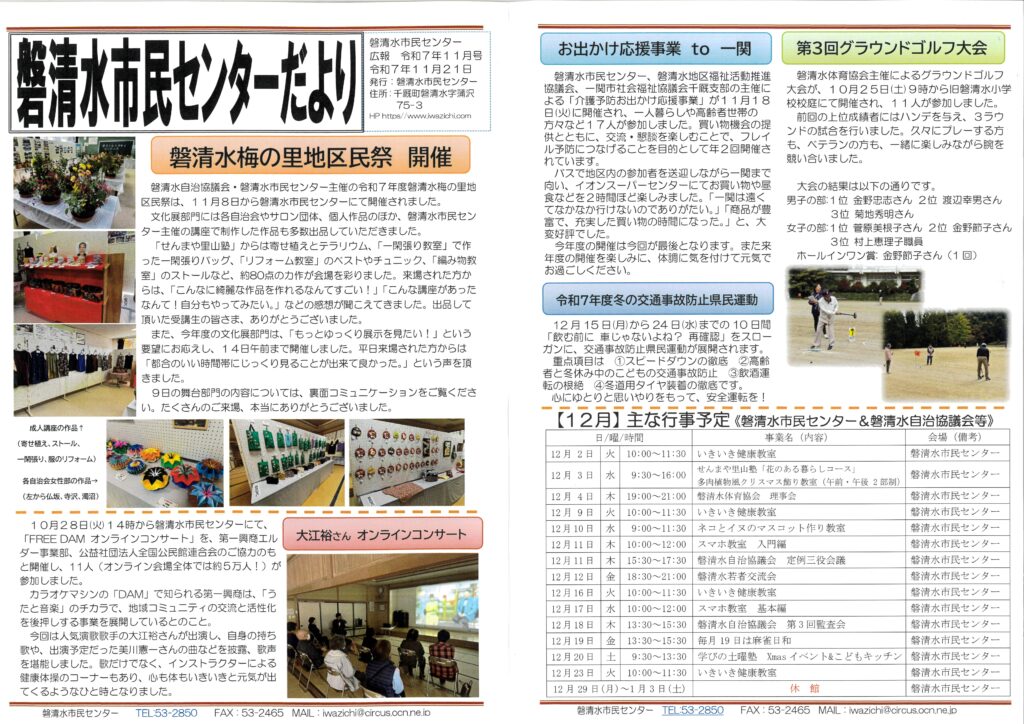 磐清水自治協議会通信、磐清水市民センター広報11月号 更新しました