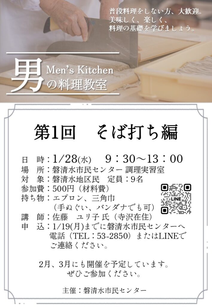 【1/28】R7年度男の料理教室 第1回 開催のお知らせ